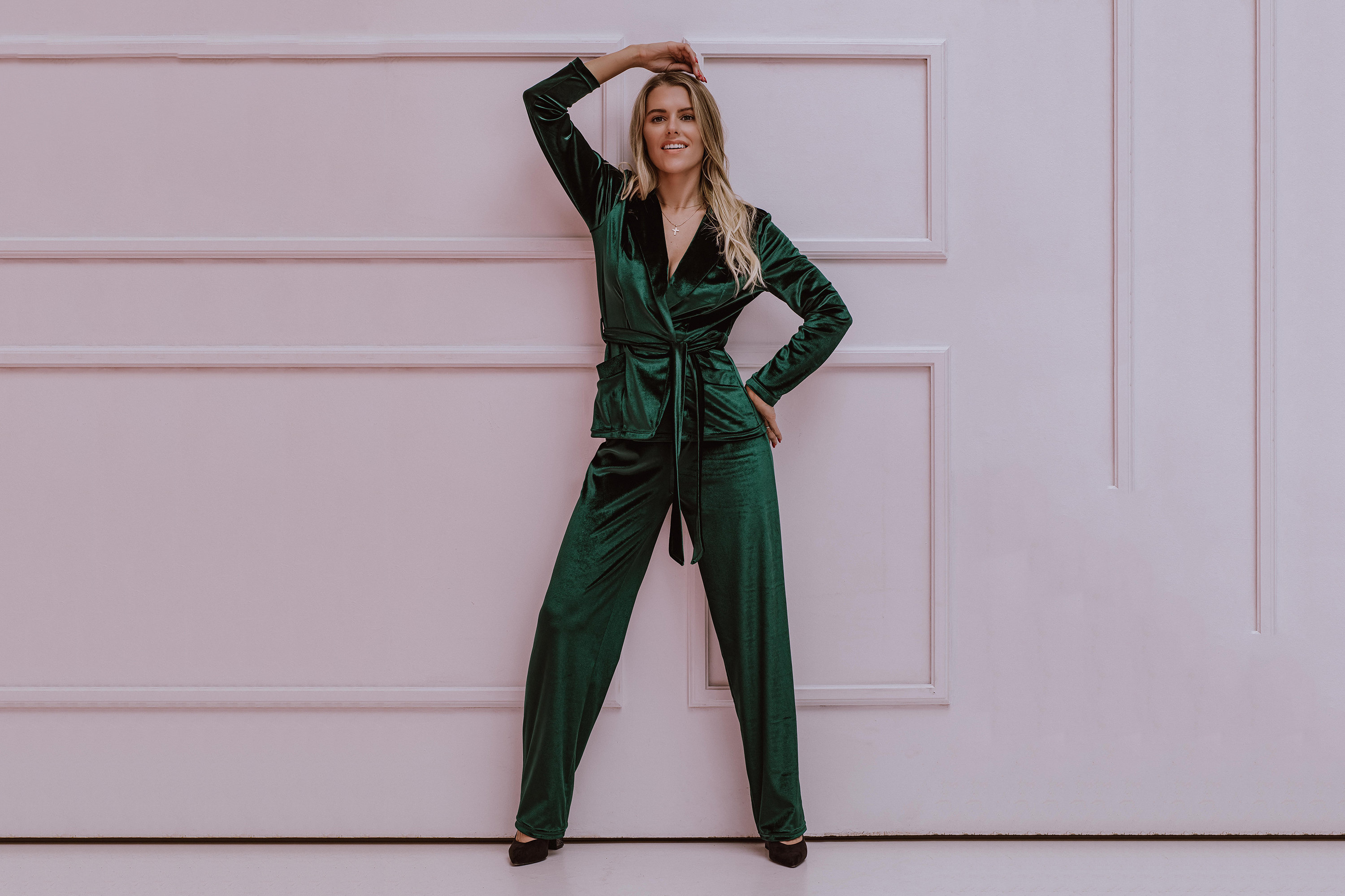 green velvet trouser suit