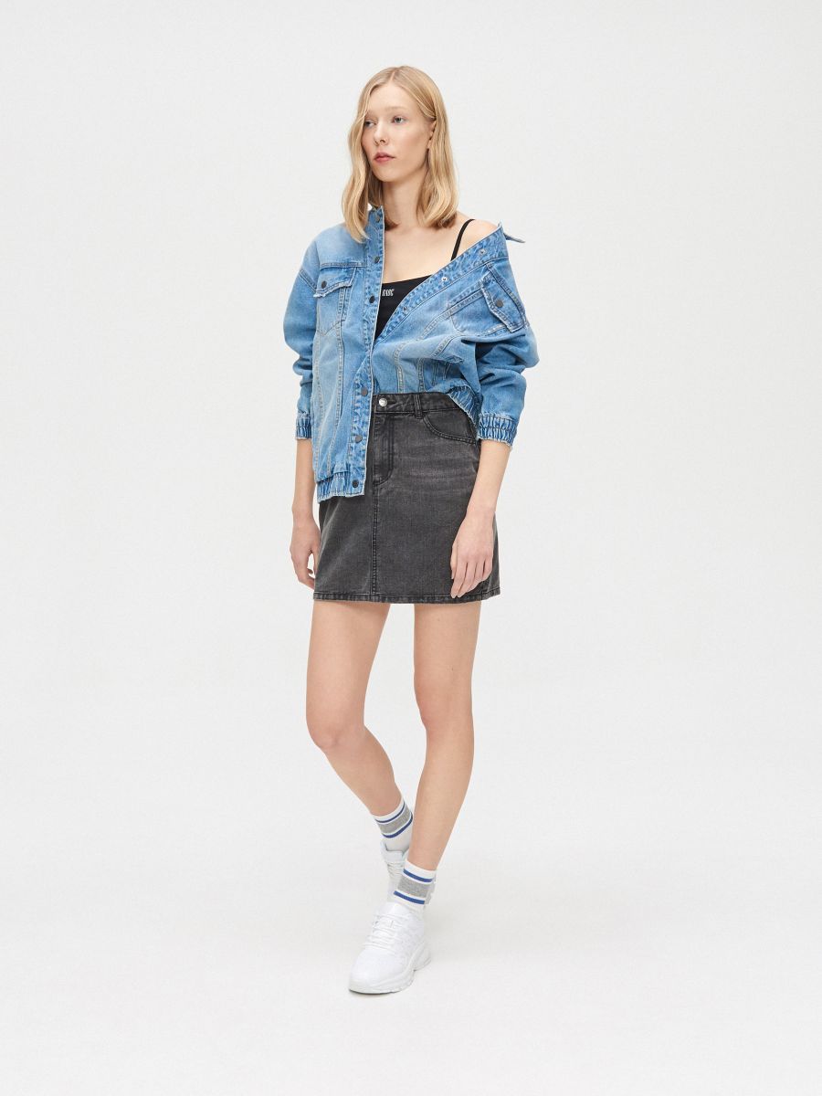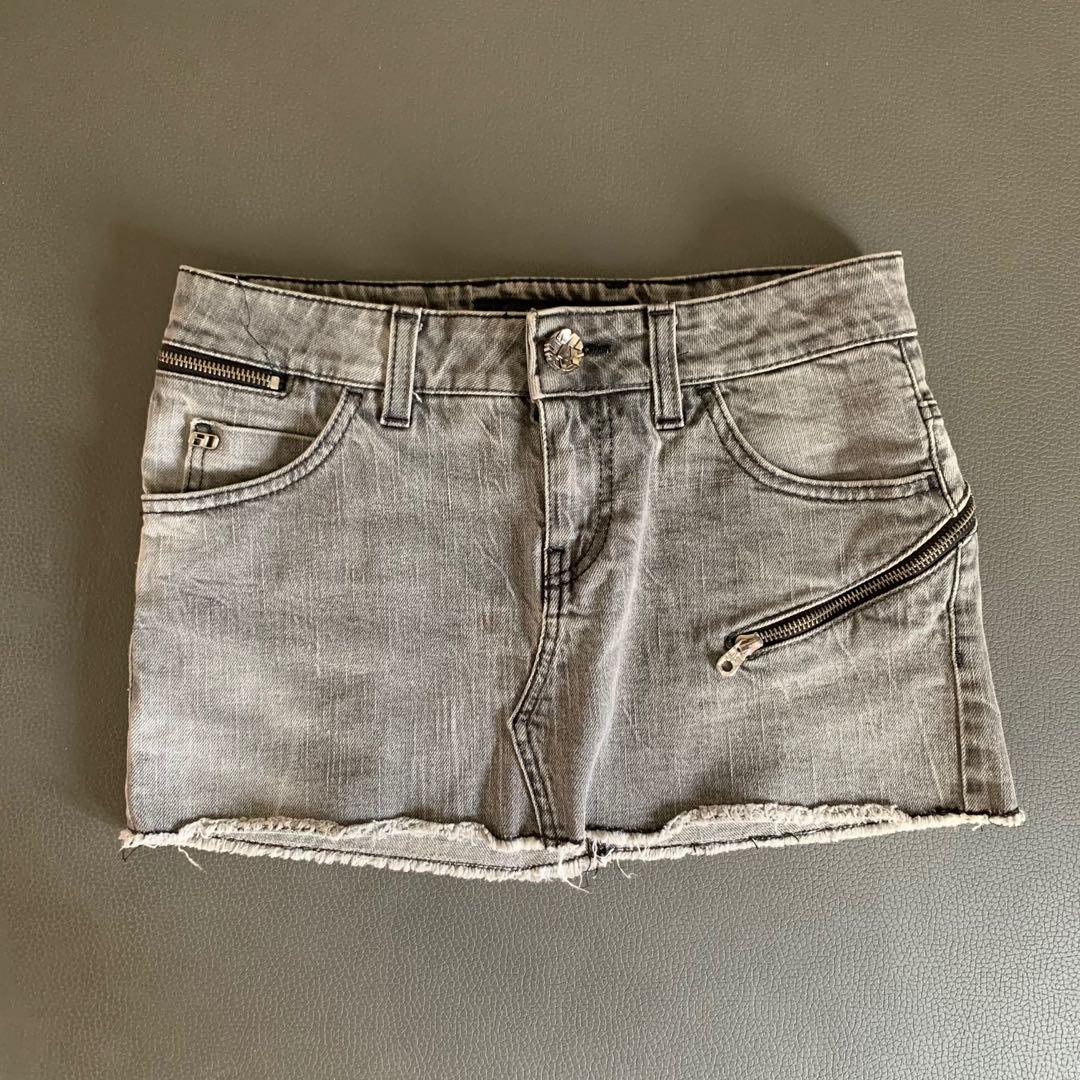 grey denim mini skirt