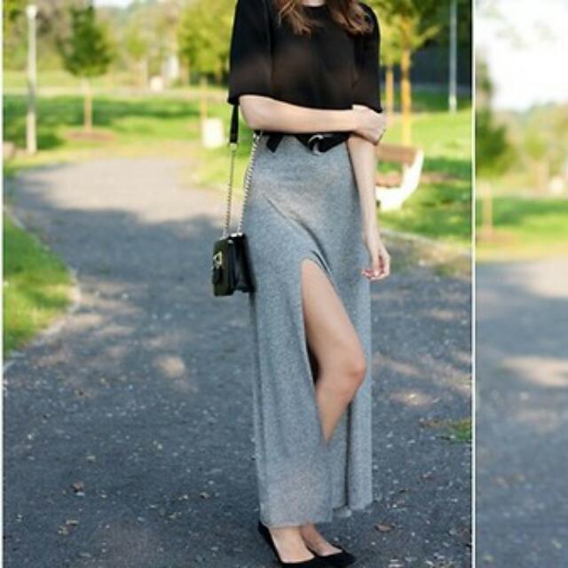 grey slit skirt