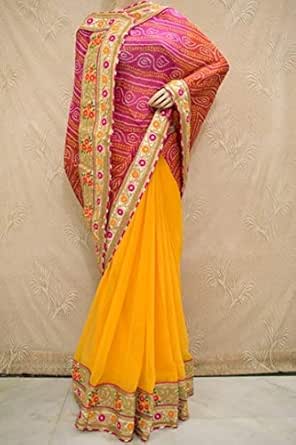heavy work bandhani sarees