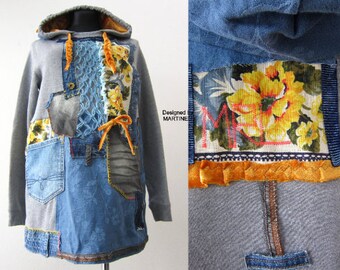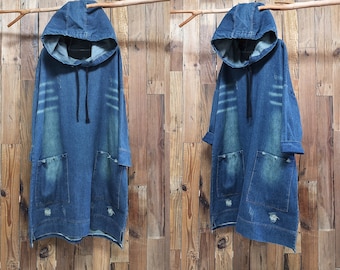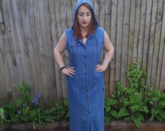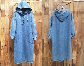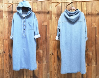 hooded denim pullover dress