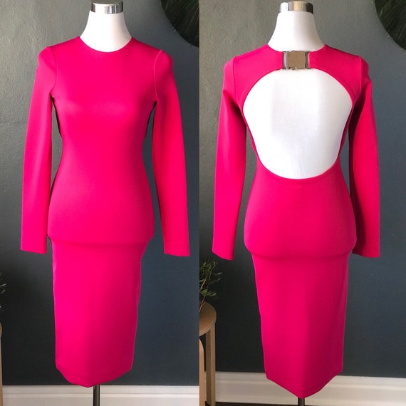 hot pink long sleeve bodycon dress