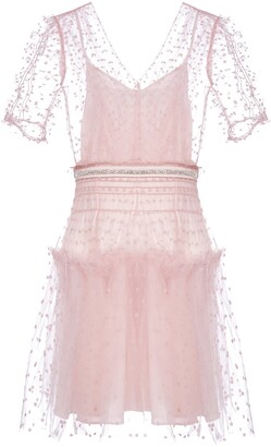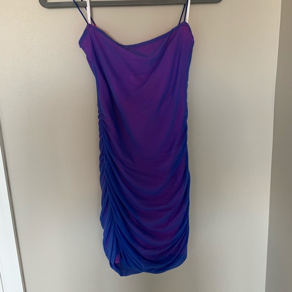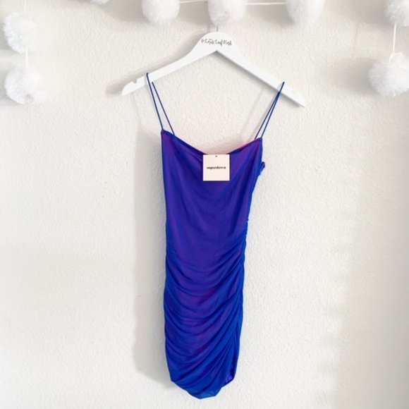 issa mesh mini dress in blue & pink
