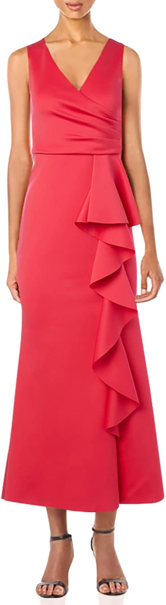jessica howard ruffle sleeve side tuck long stretch gown
