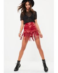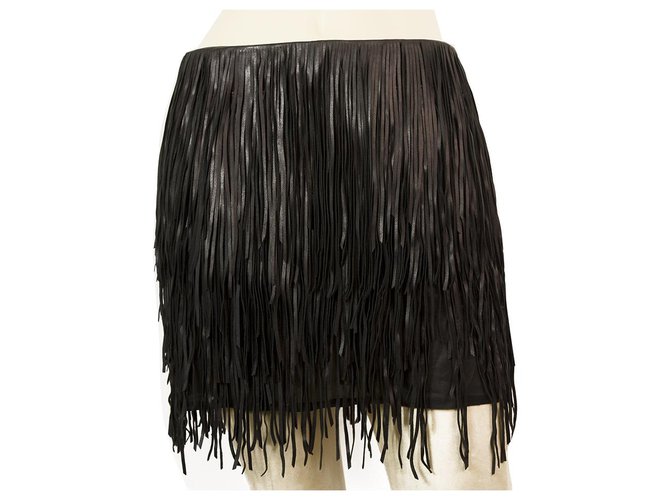 leather fringe mini skirt