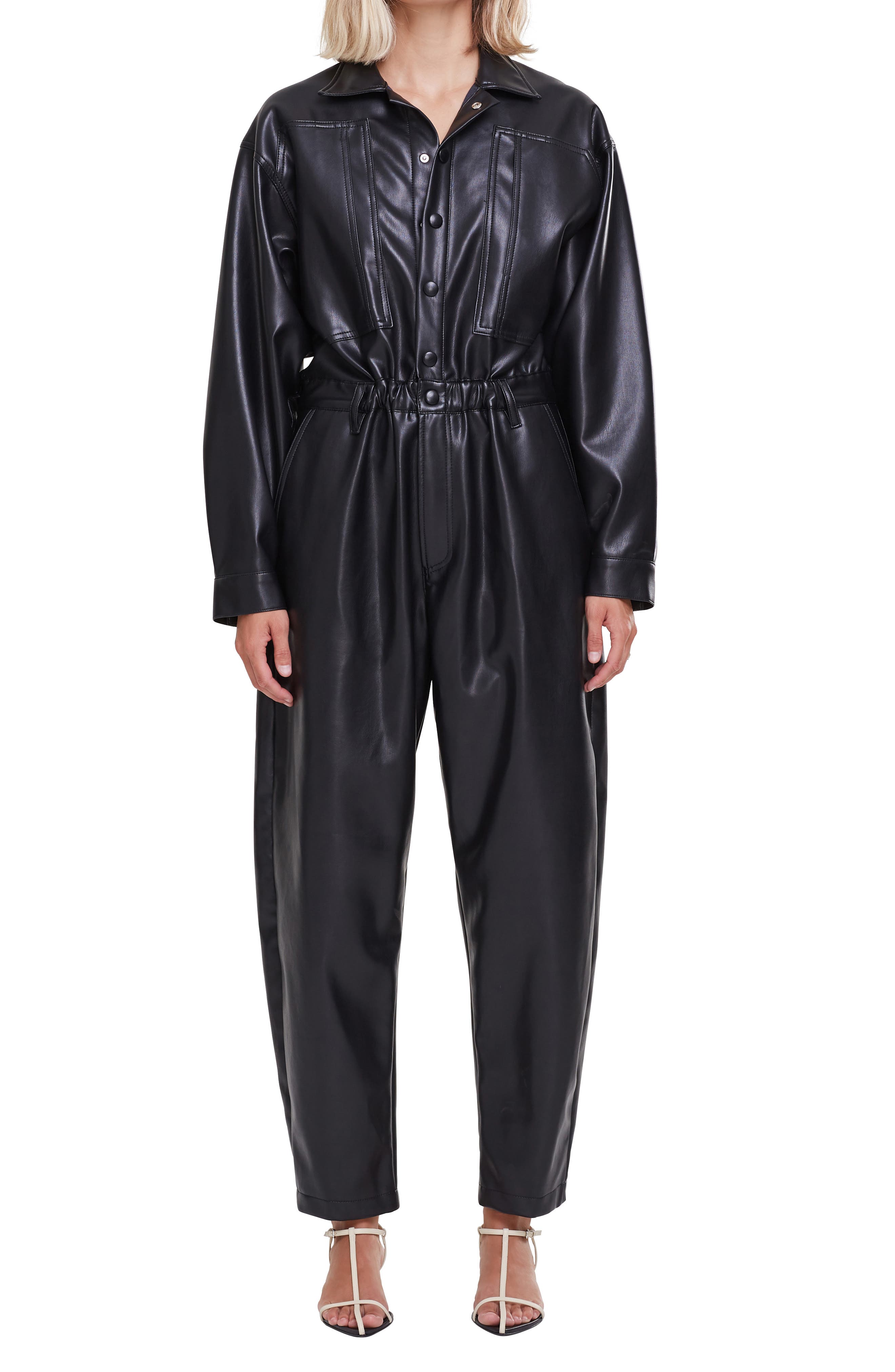 leather jumpsuit outfit