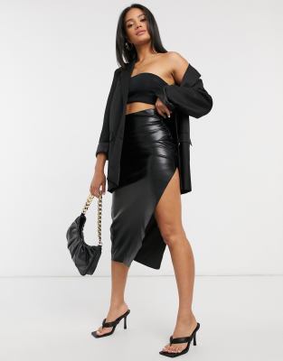 leather midi skirt with split