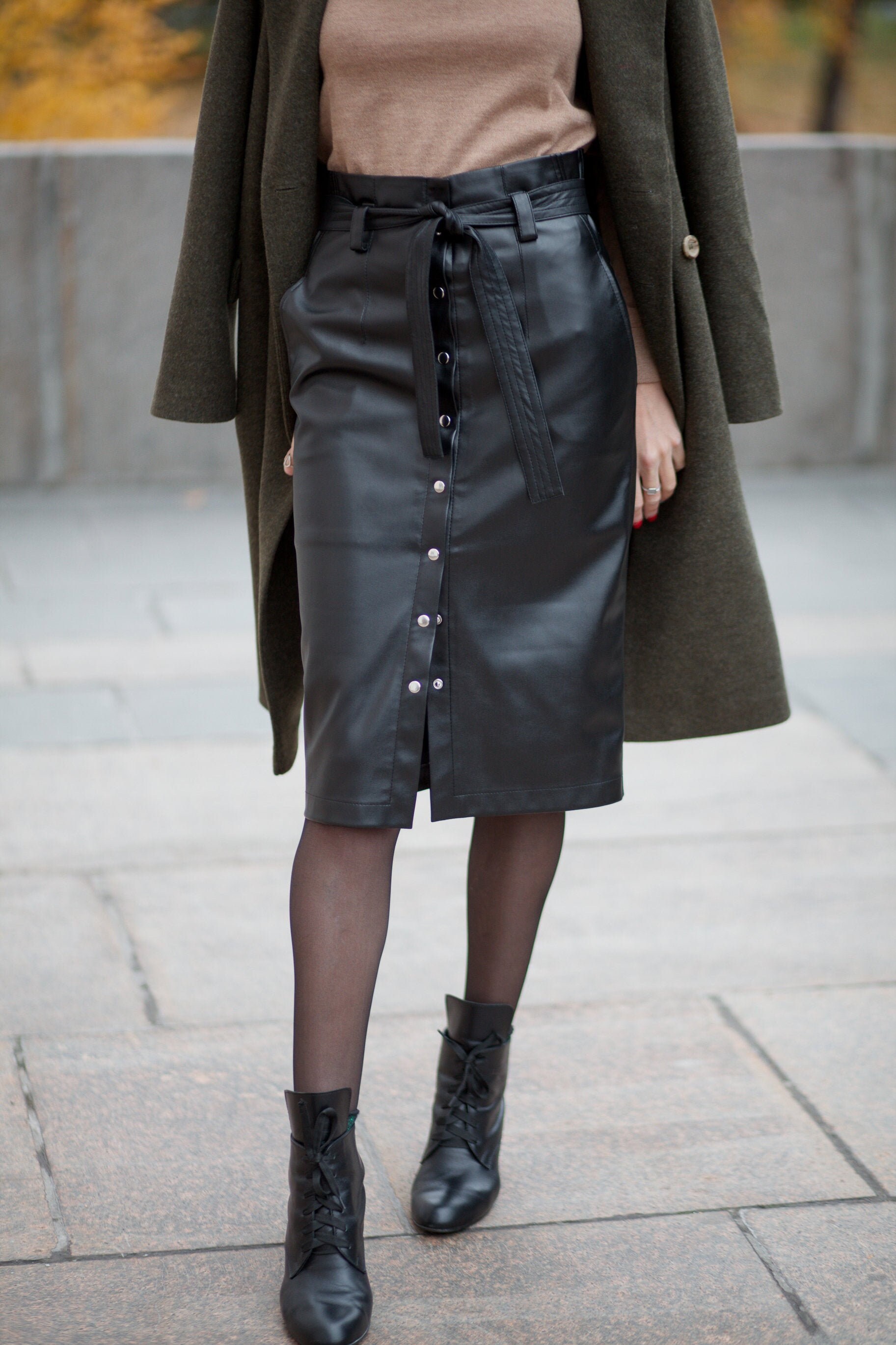 leather skirt midi