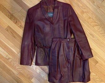 leather skirt suit