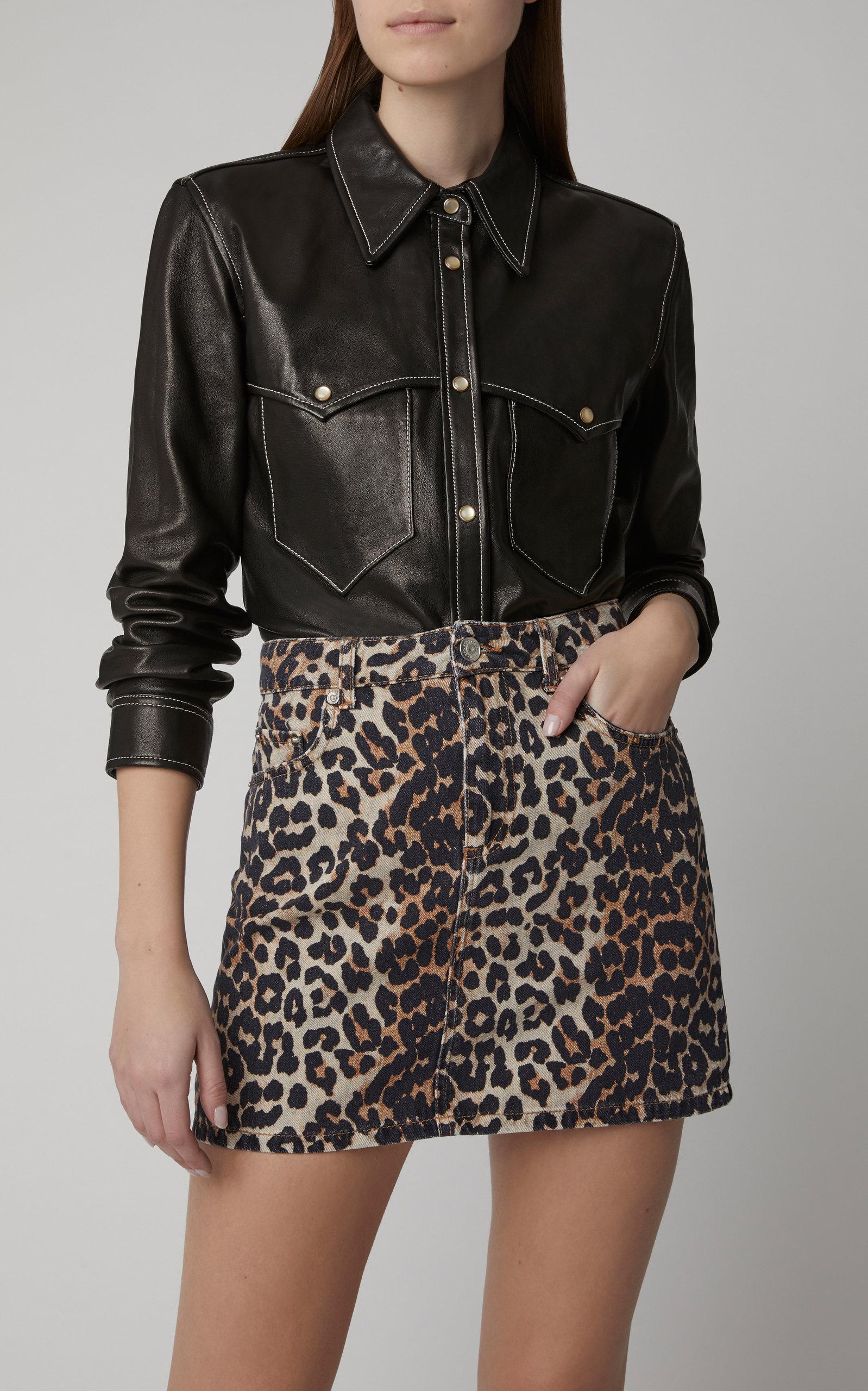 leopard denim mini skirt