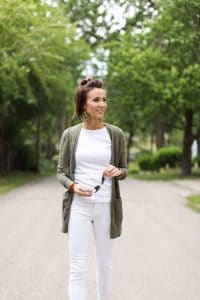 leopard print top with white pants