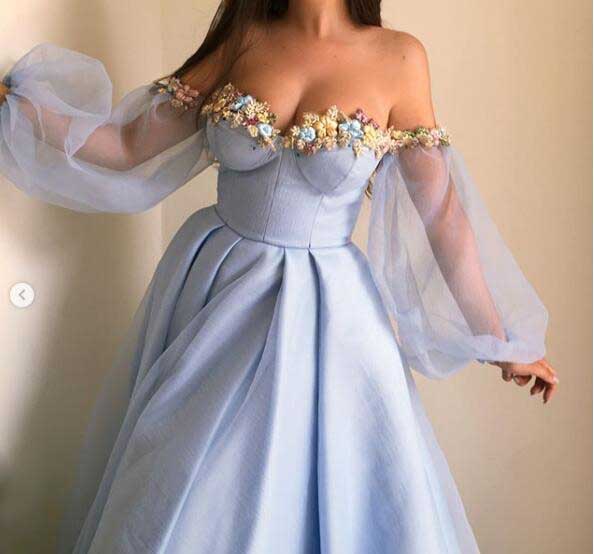 light blue long sleeve formal dress