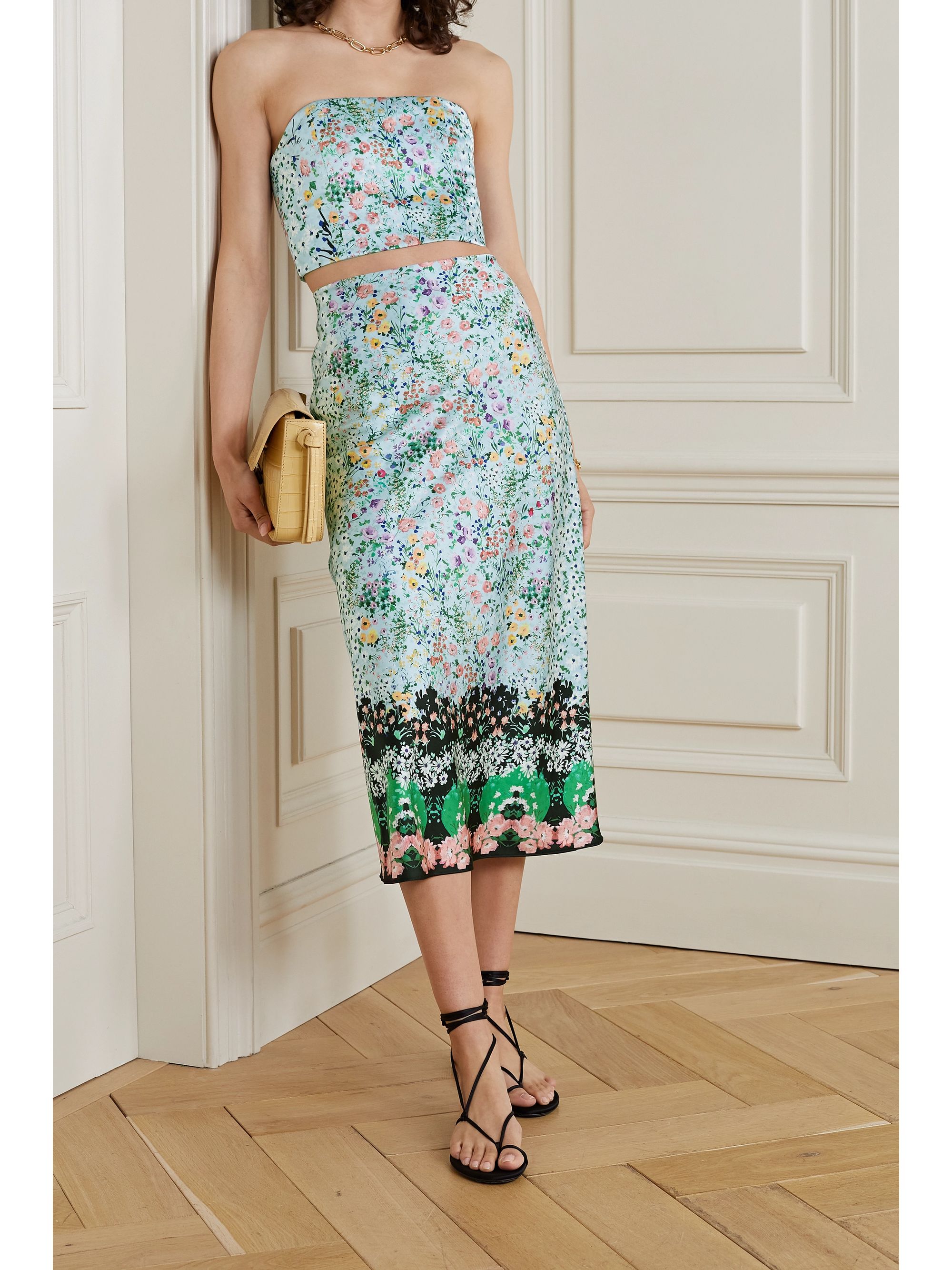 light blue satin skirt