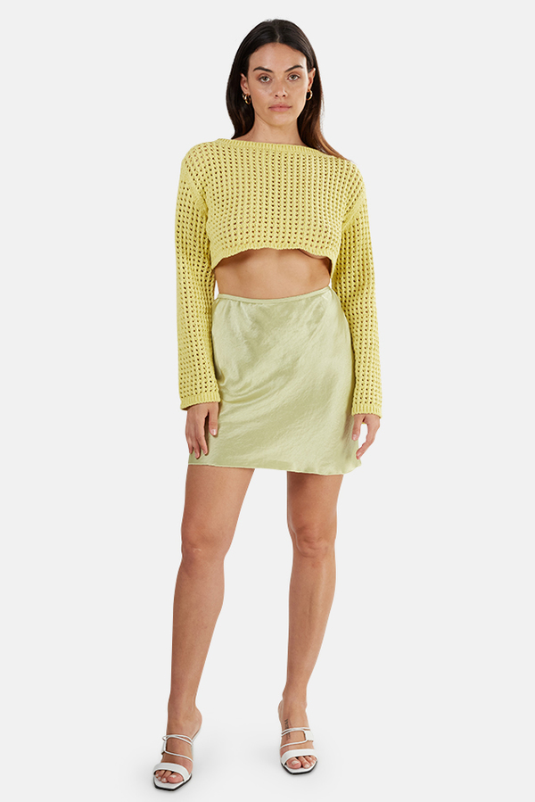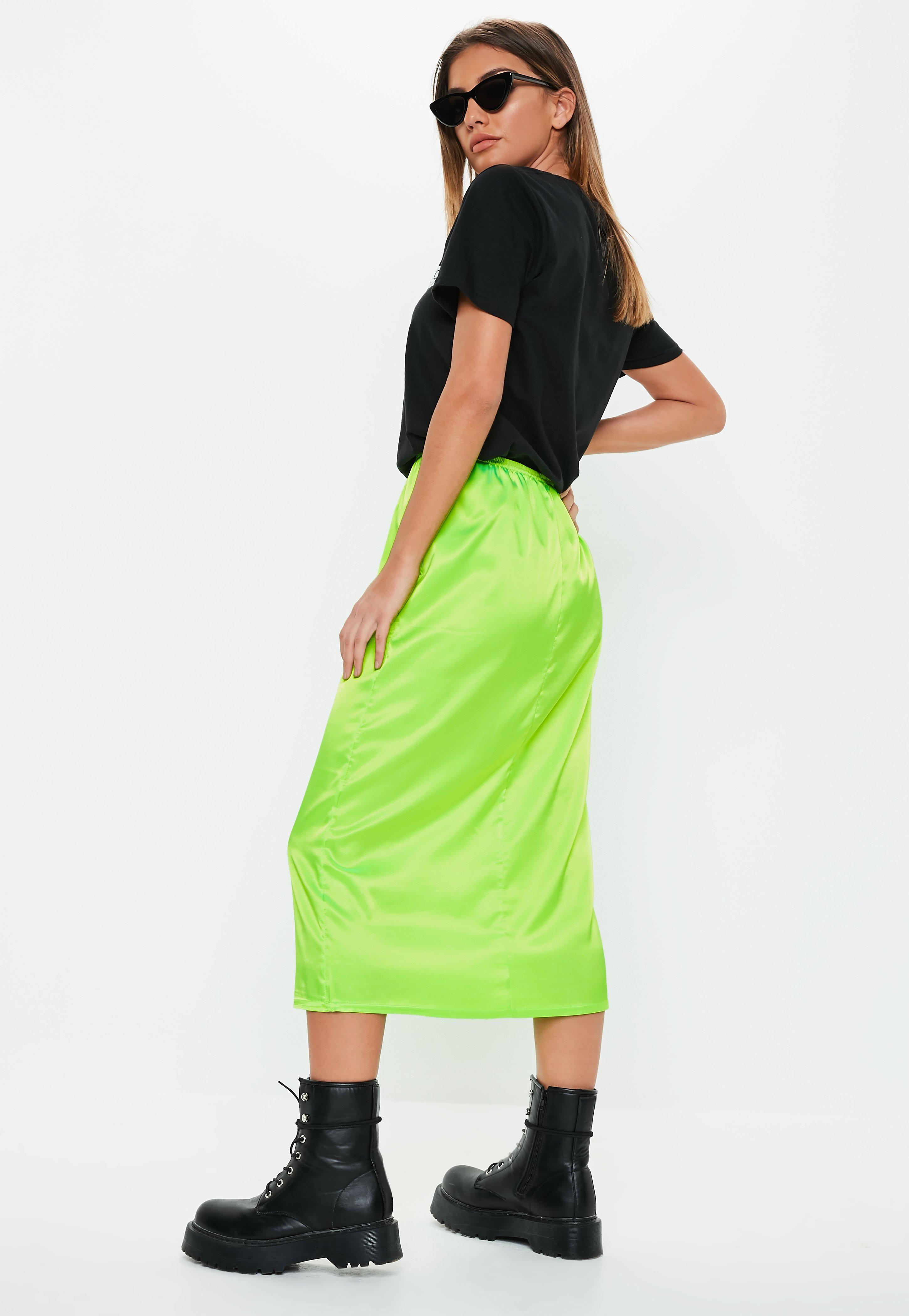 lime satin skirt
