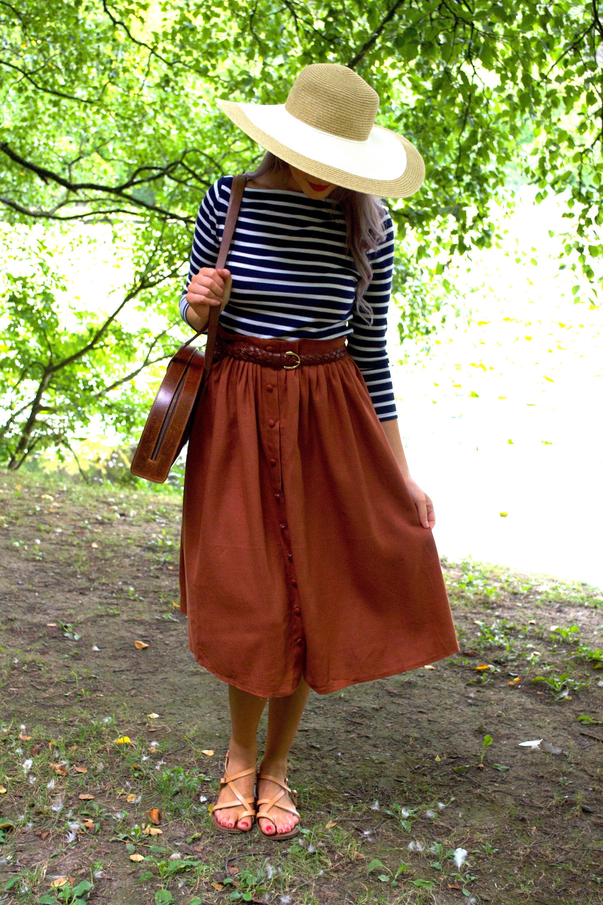linen button front skirt