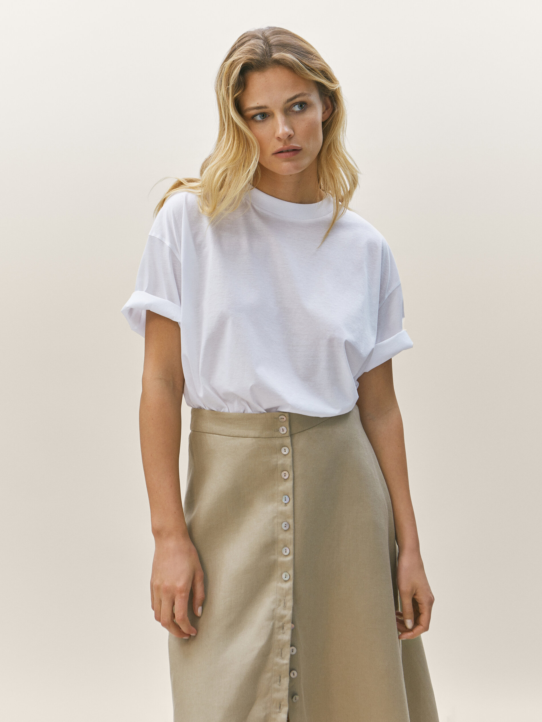 linen button skirt