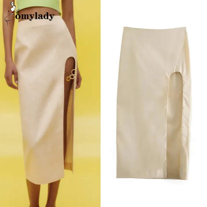 long beige skirt
