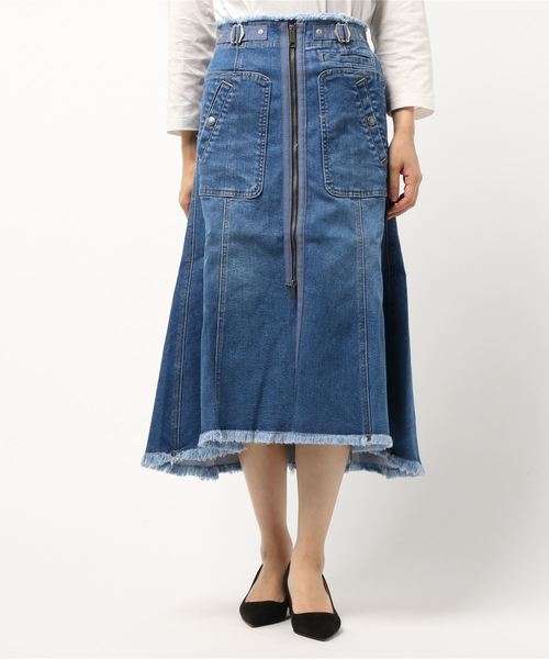 long blue denim skirt