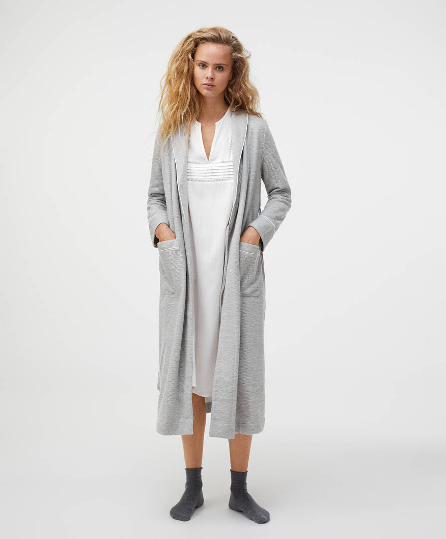 long grey dressing gown
