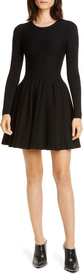 long sleeve black fit and flare dress