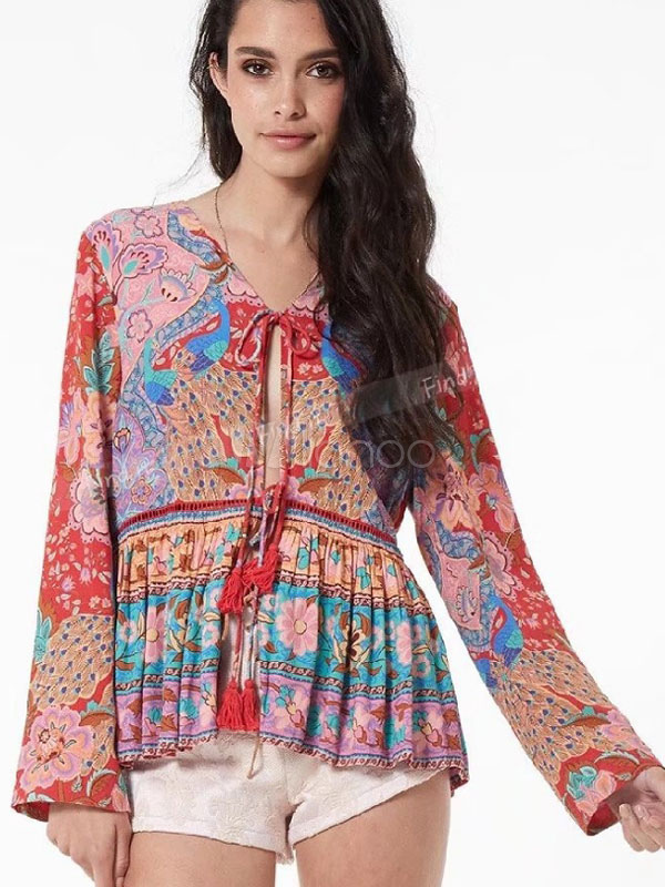 long sleeve boho tops