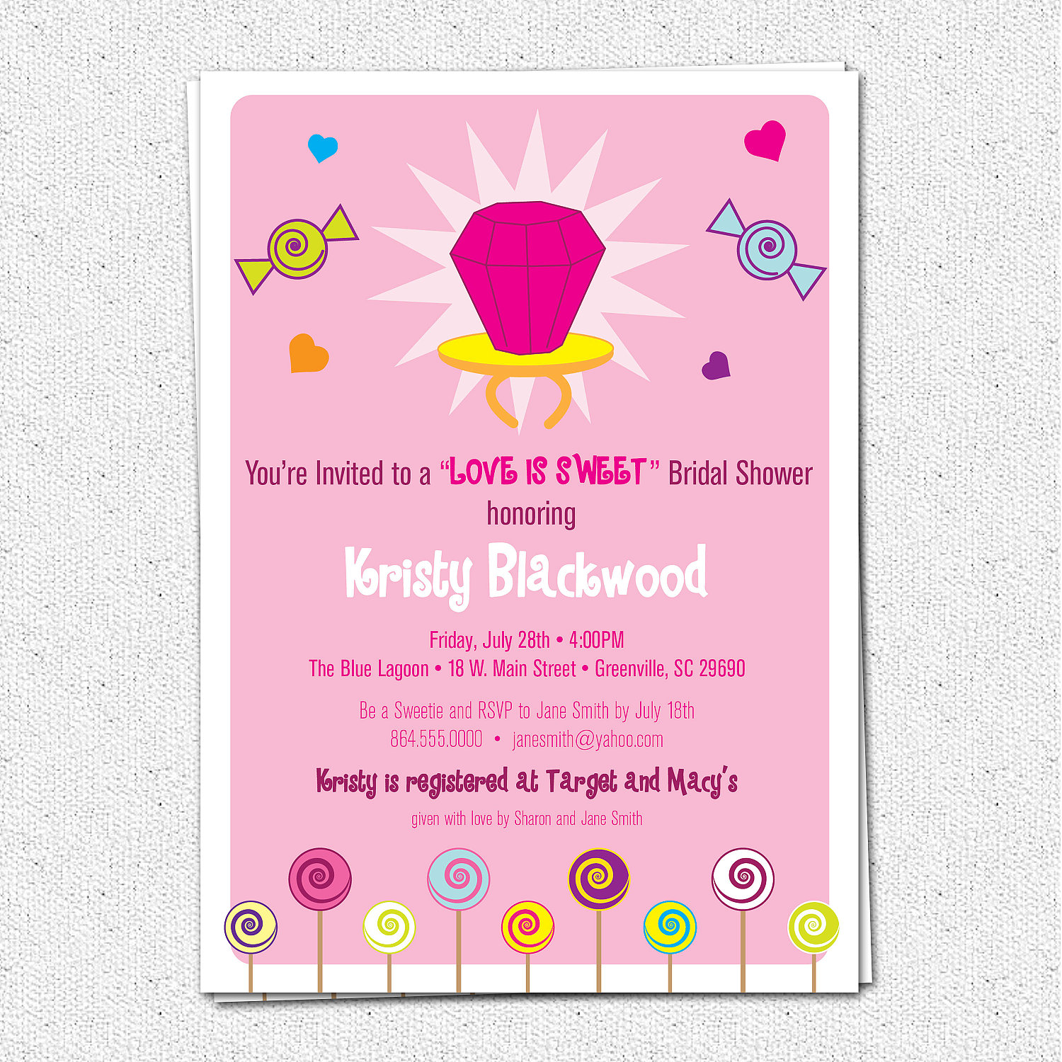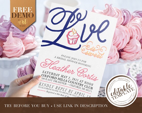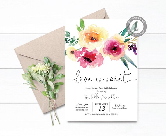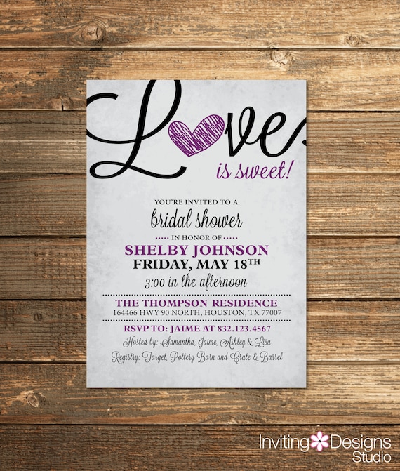 love is sweet bridal shower invitations