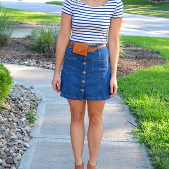 madewell button front denim skirt