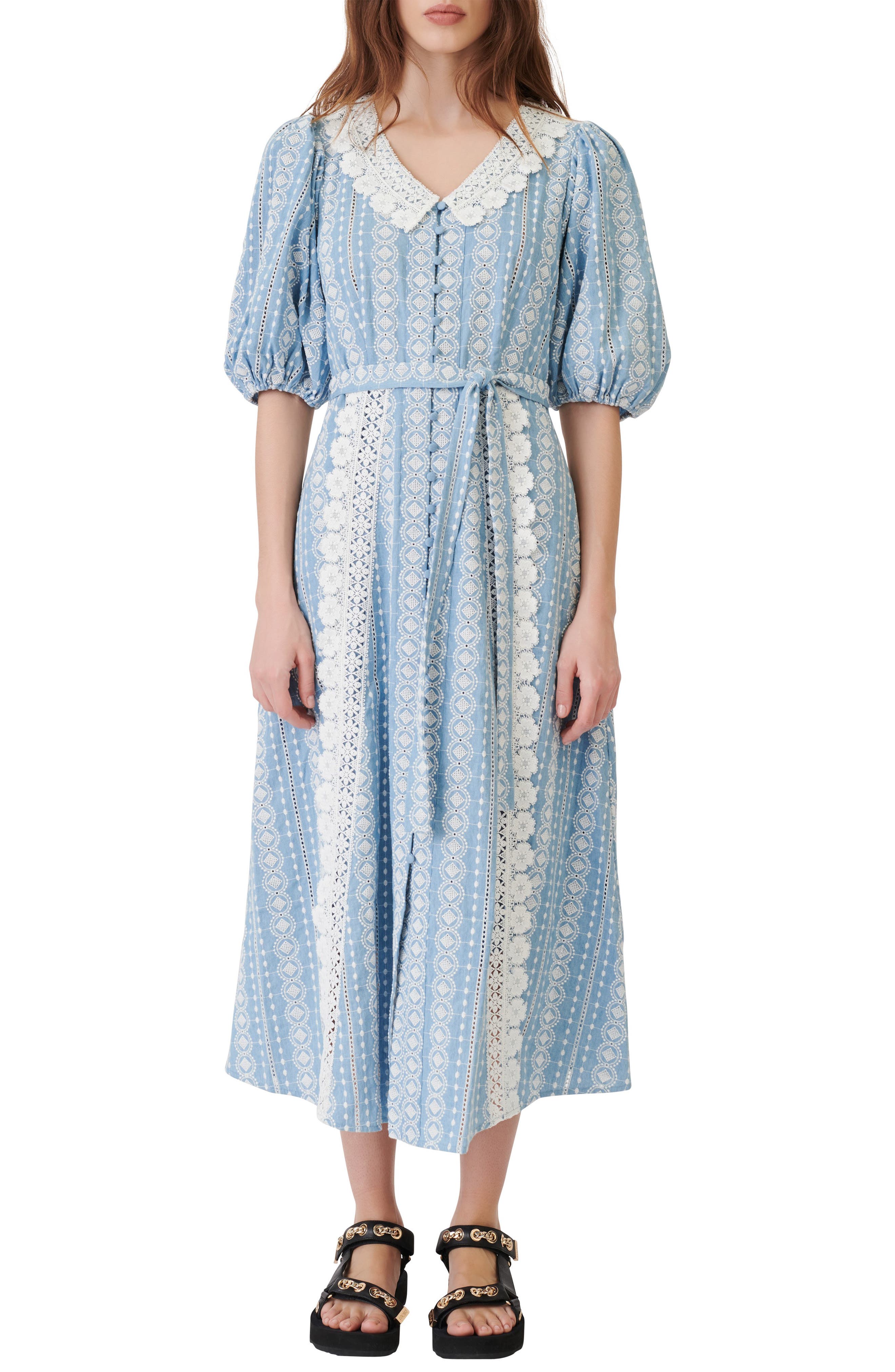 maje cotton dress with broderie anglaise