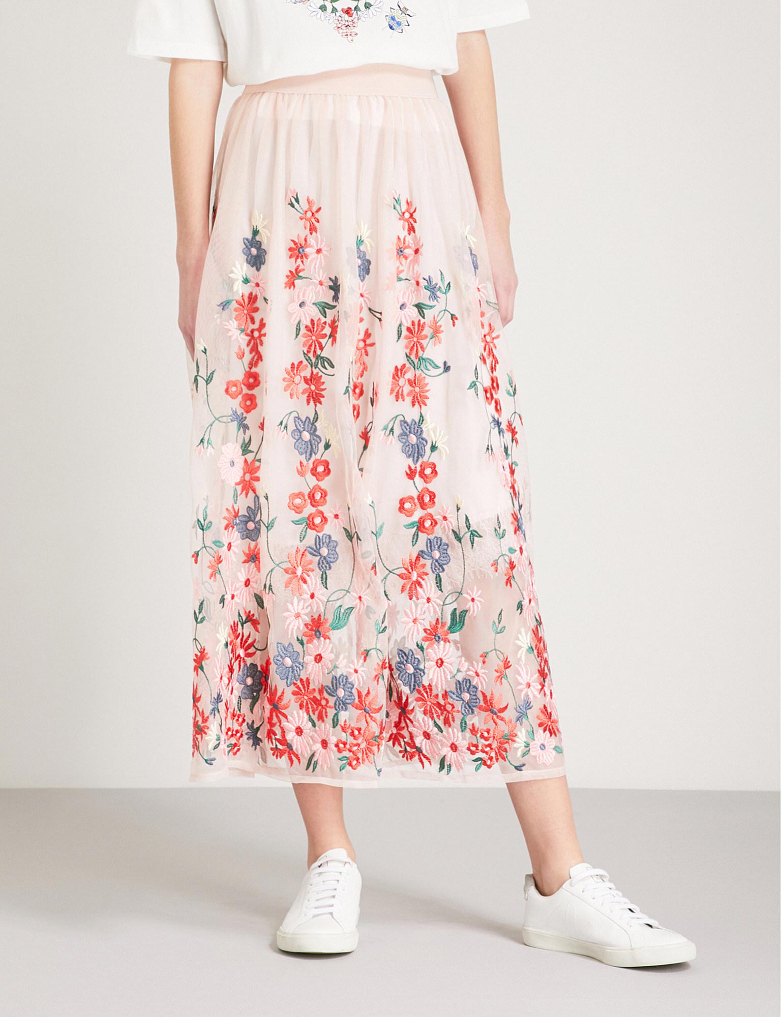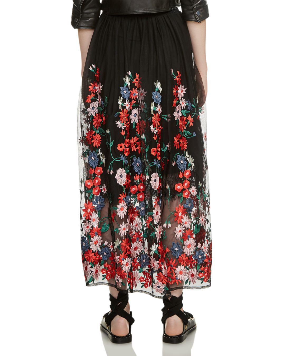 maje embroidered skirt