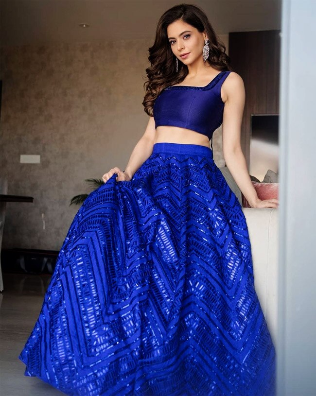 makeup with blue lehenga