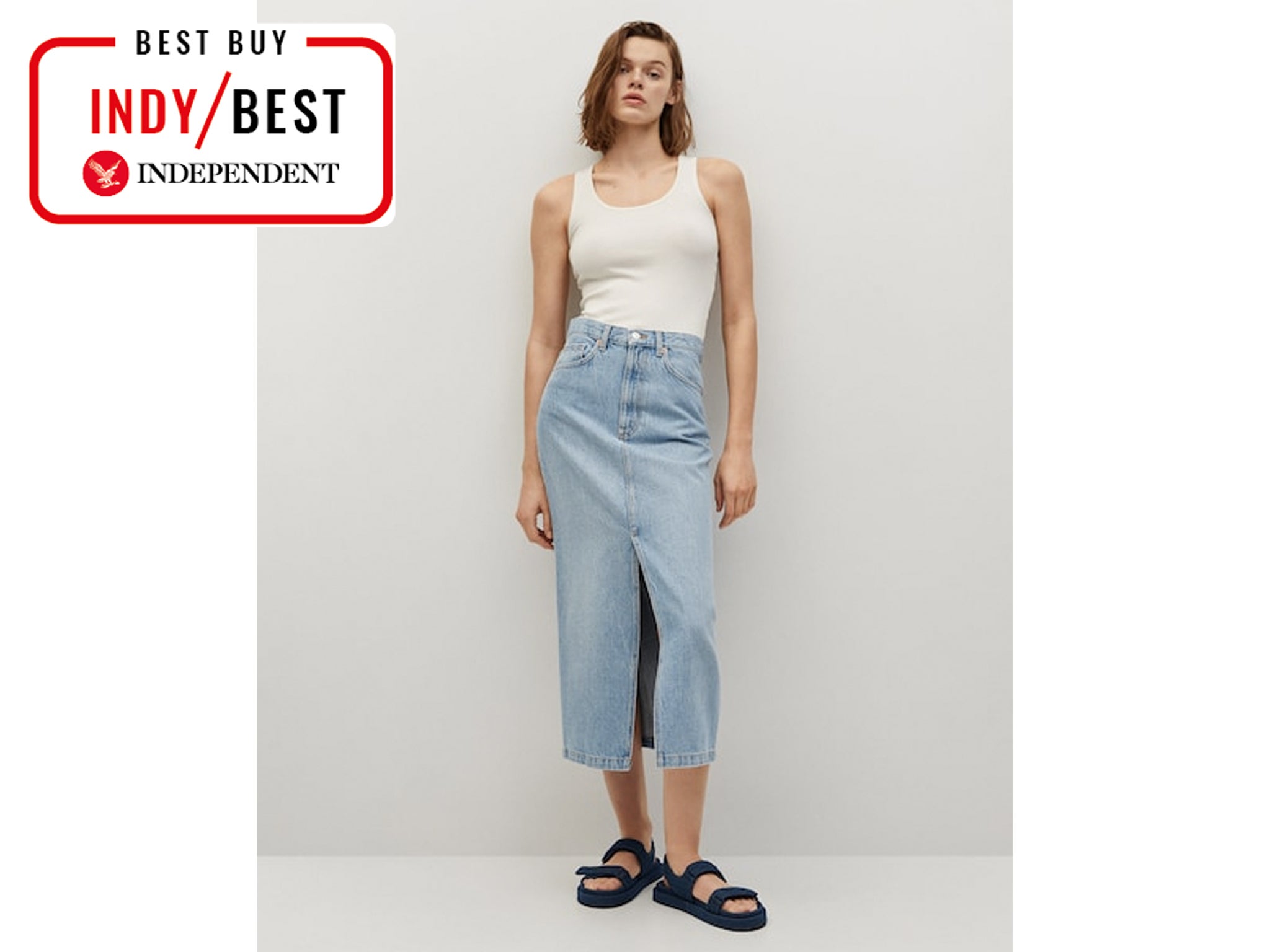 mango midi denim skirt