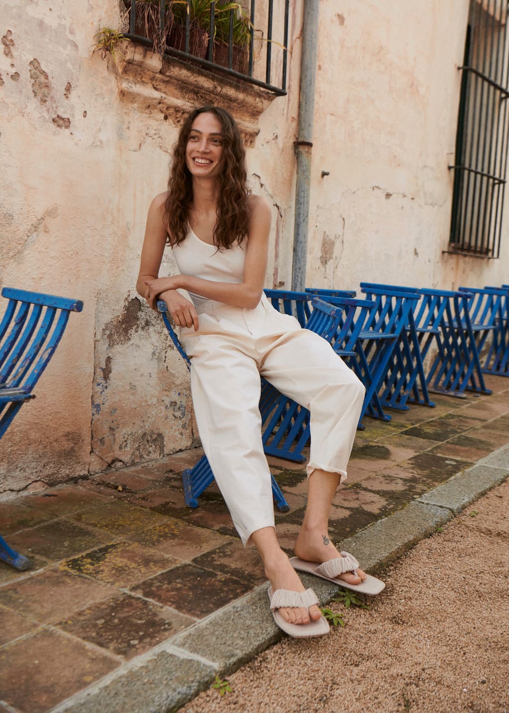 mango ruched striped sandals
