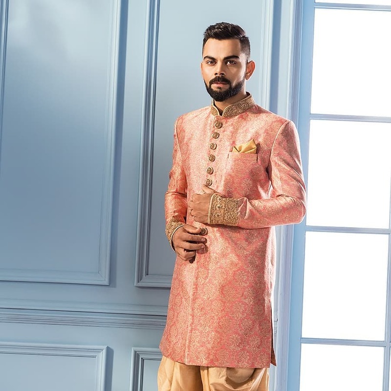 manyavar peach sherwani