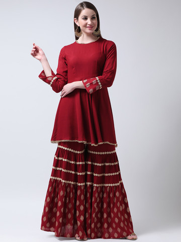 maroon kurti myntra