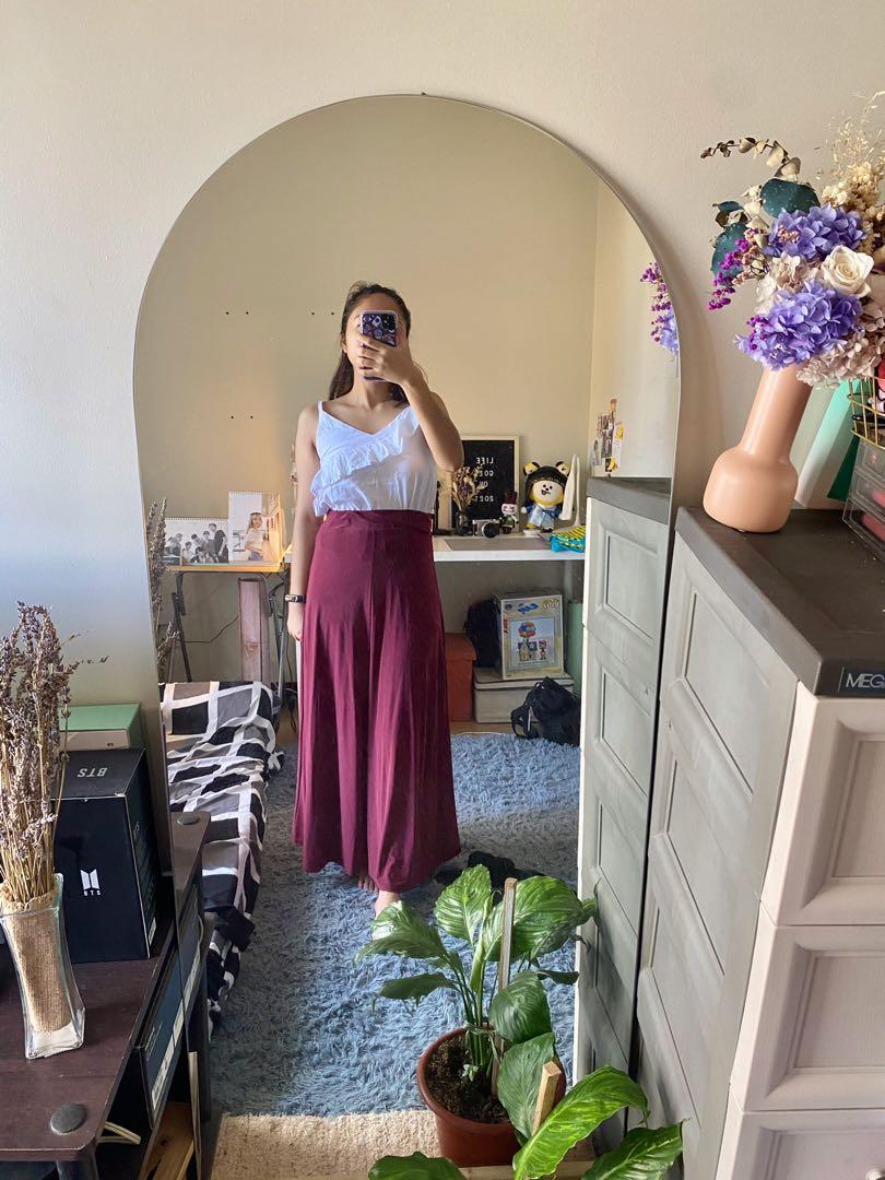 maroon maxi skirt
