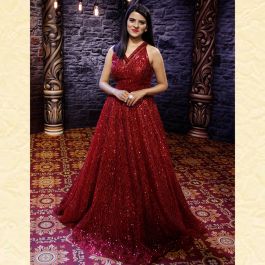 maroon net dress
