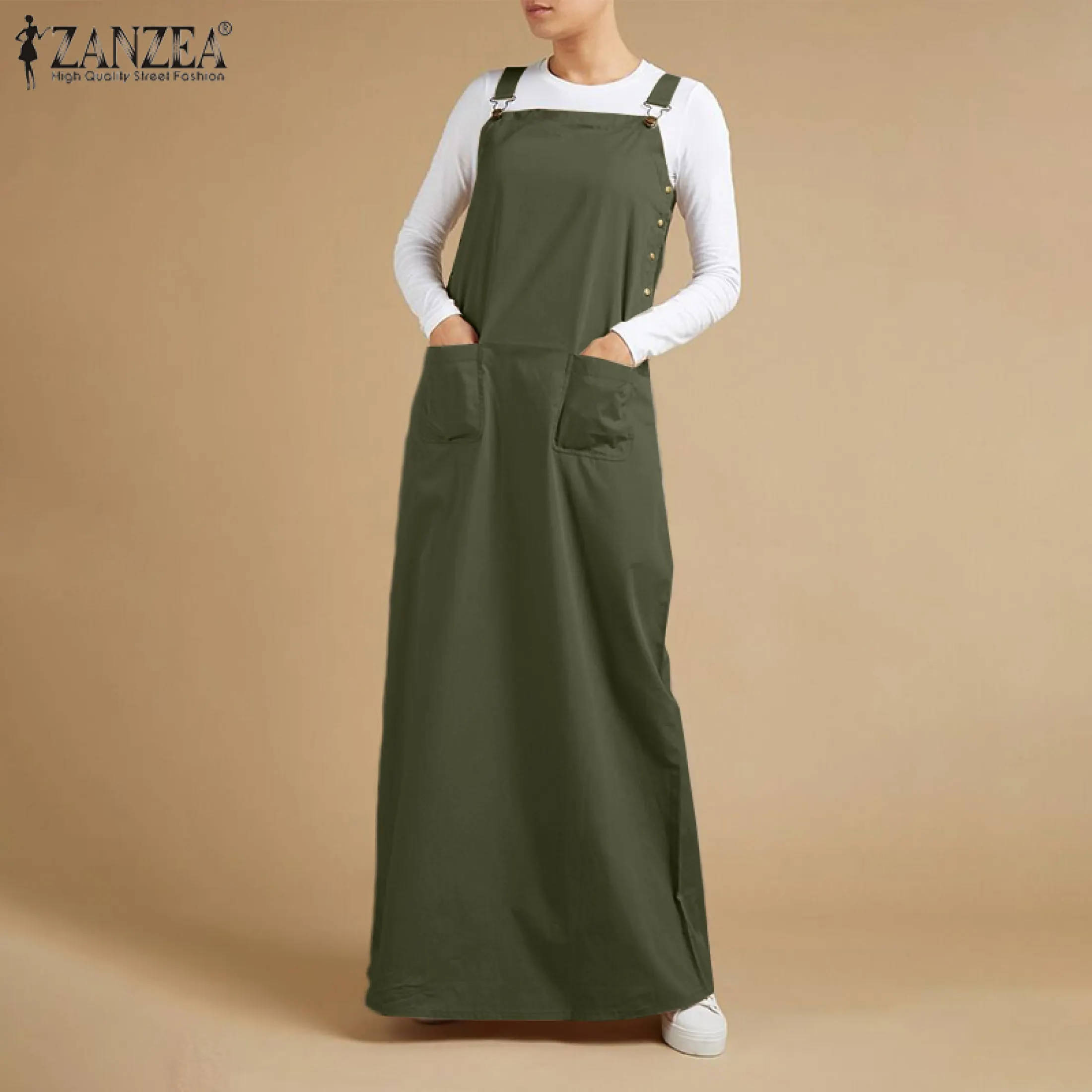 maxi dungaree dress