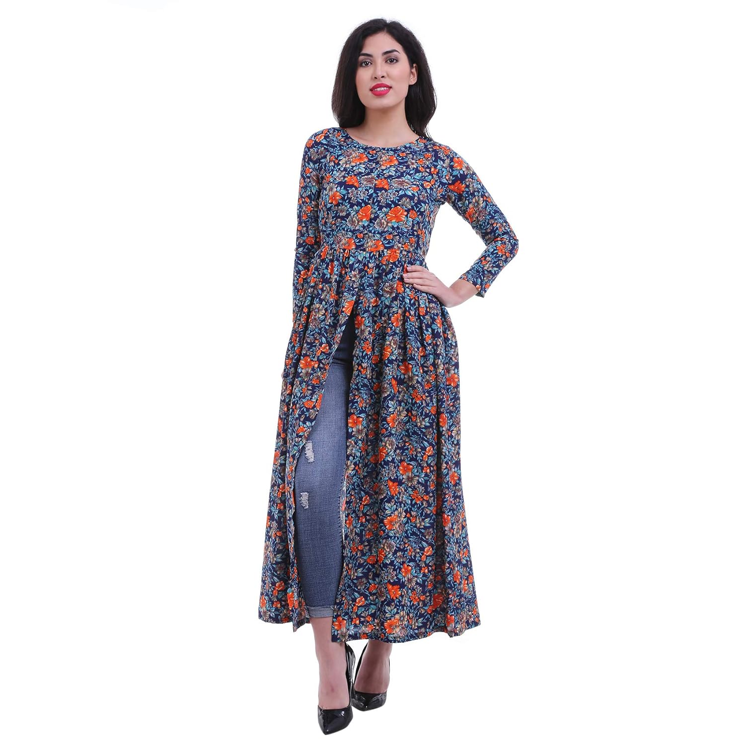 maxi kurti with jeans