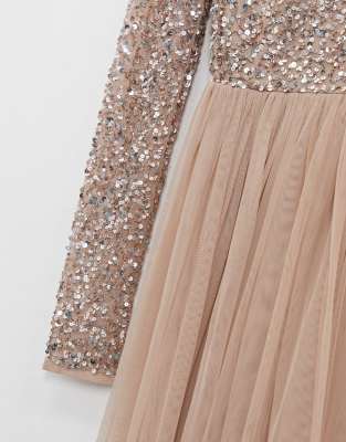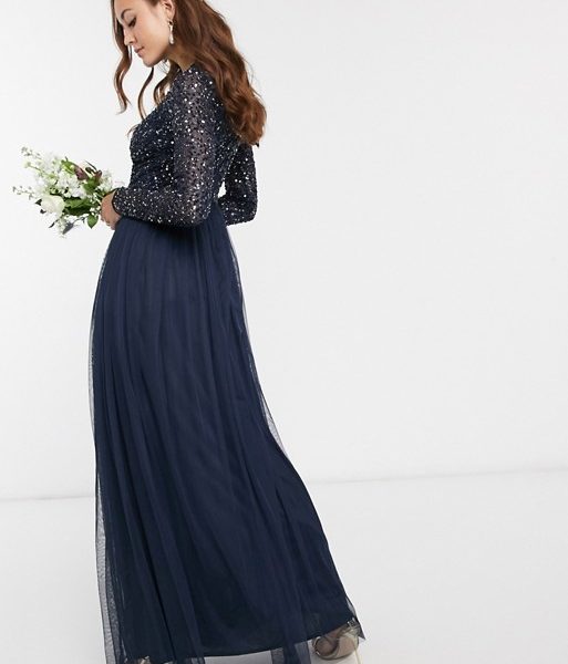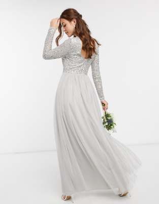maya bridesmaid long sleeve maxi tulle dress