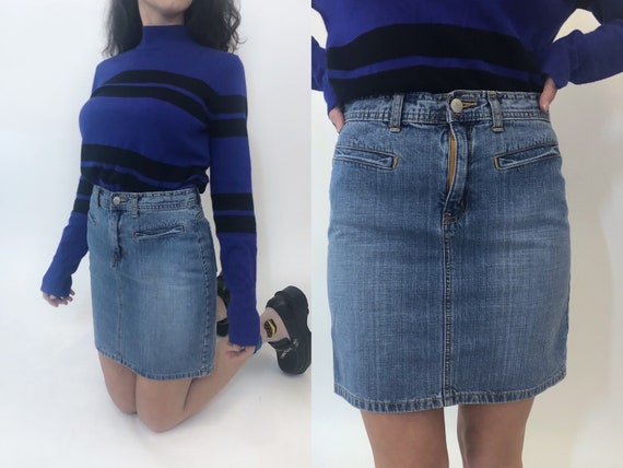 medium wash denim skirt