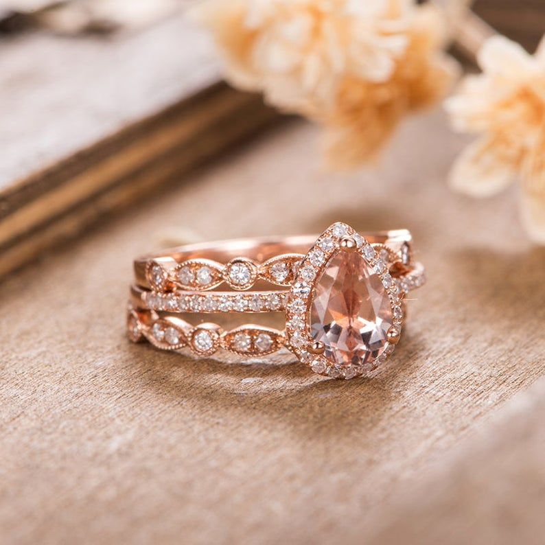 morganite wedding ring set