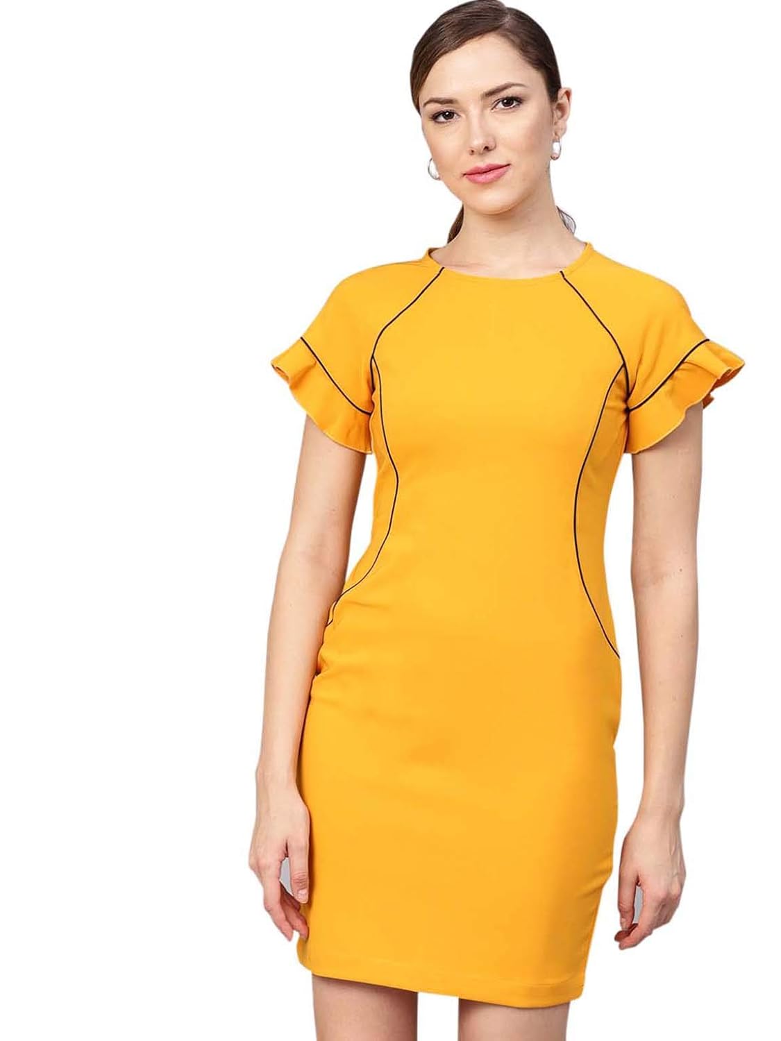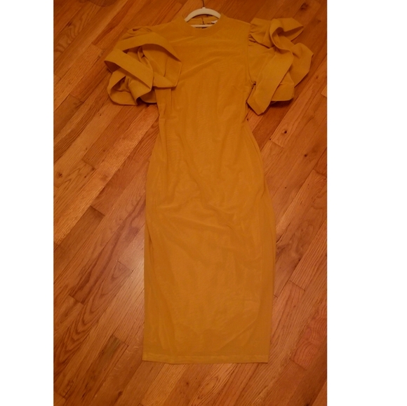 mustard fitted dress