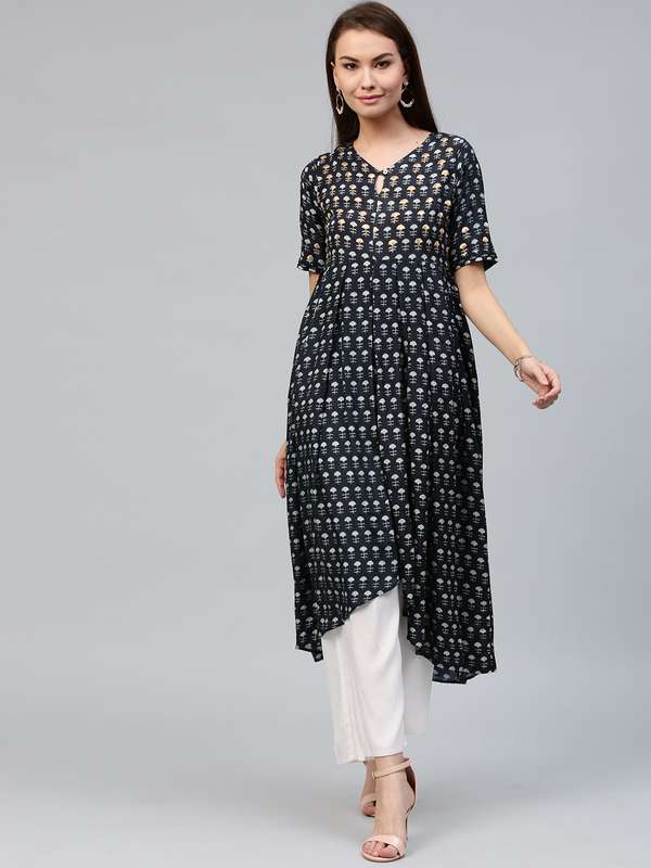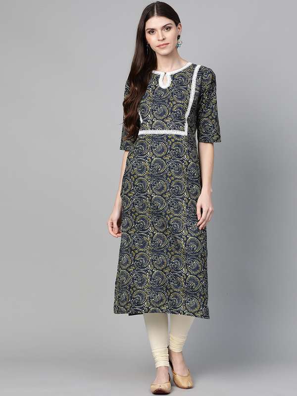 myntra navy blue kurta