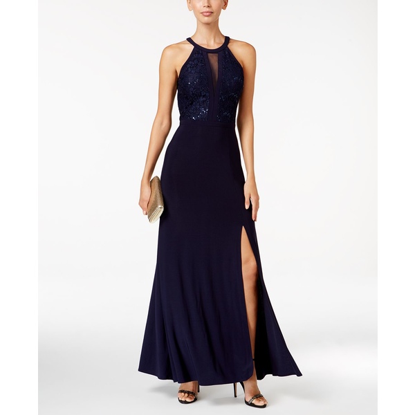 navy halter gown
