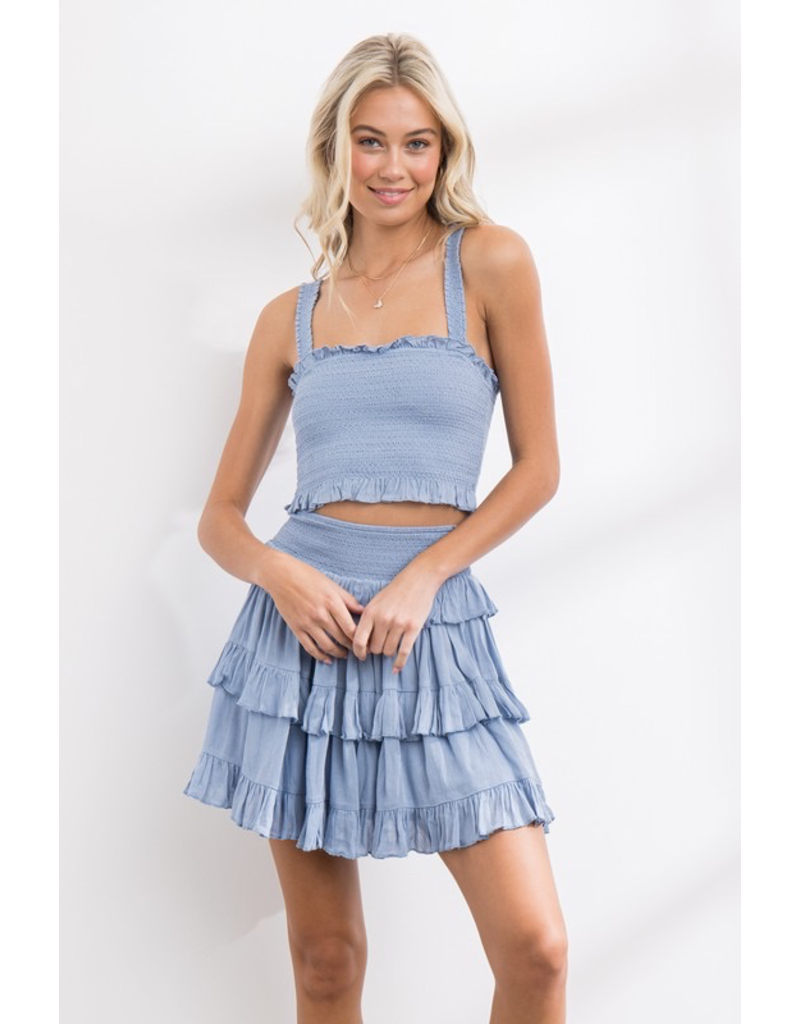 navy ruffle skirt