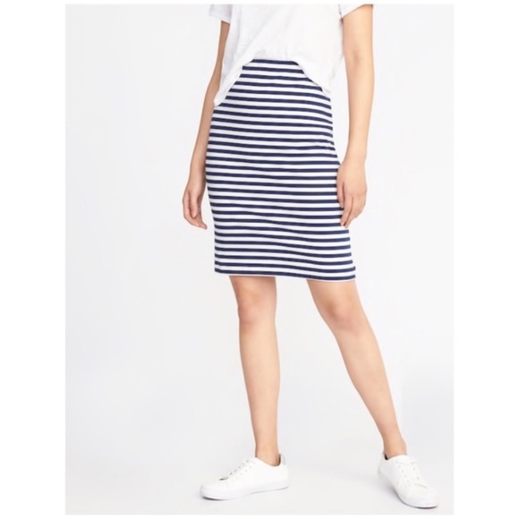 navy striped skirt