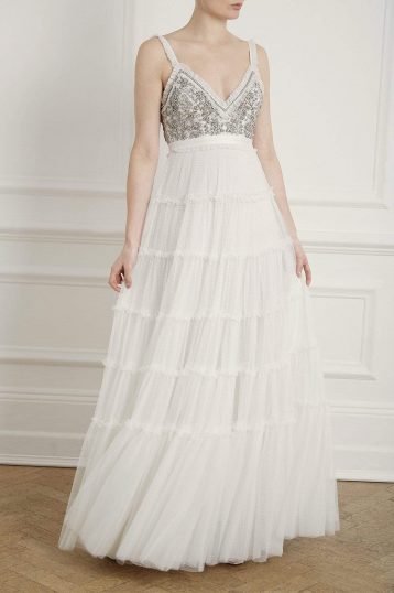 needle and thread wedding gown