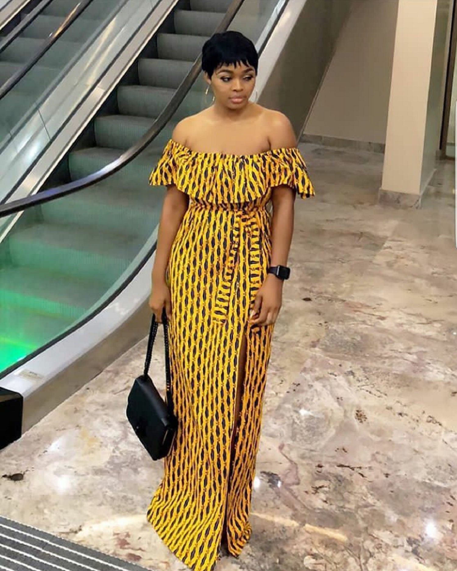 off shoulder african print dress