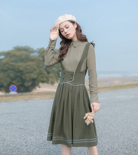 olive green two piece dress