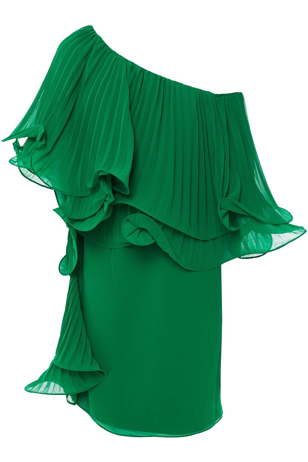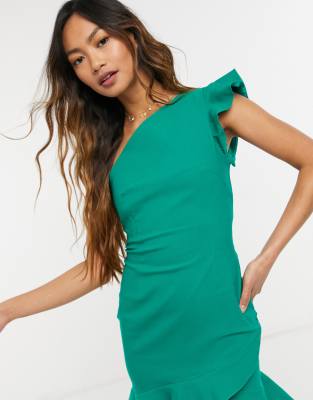 one shoulder green mini dress